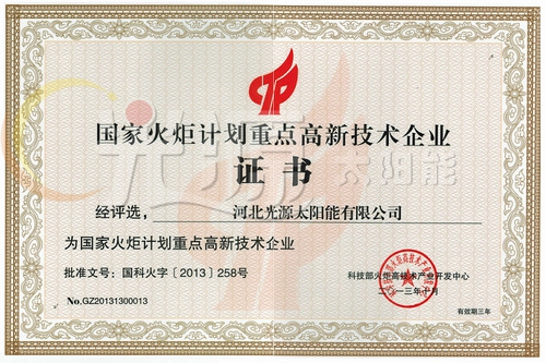 國家火炬計劃重點高新技術企業(yè)證書